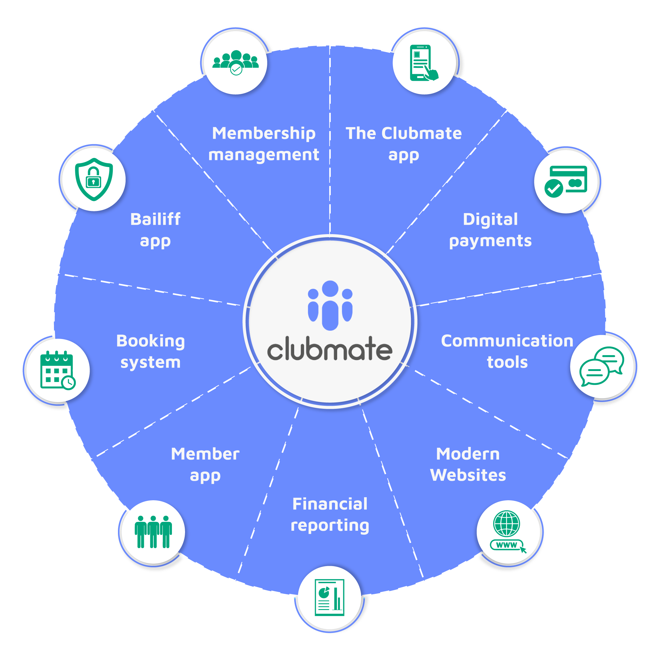Clubmate Feature Wheel Hassle Free Renewals. Happier Members. See How Clubmate Works.Watch a Clubmate DemoBest pre-recorded webinar software platform