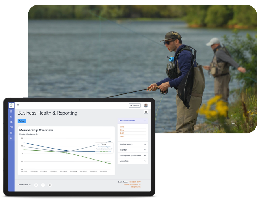 Clubmate is so straightforward to use and can be accessed from anywhere with an internet connection, so everyone on our team can see how the fishery is doing and monitor memberships and bookings